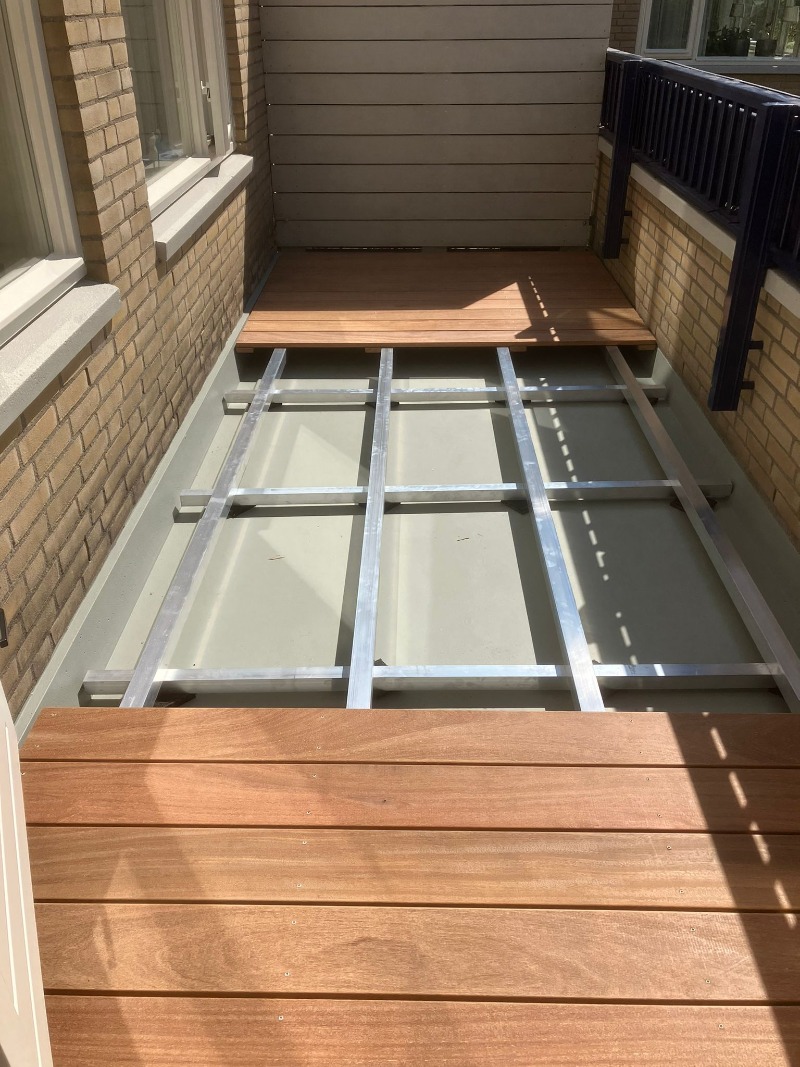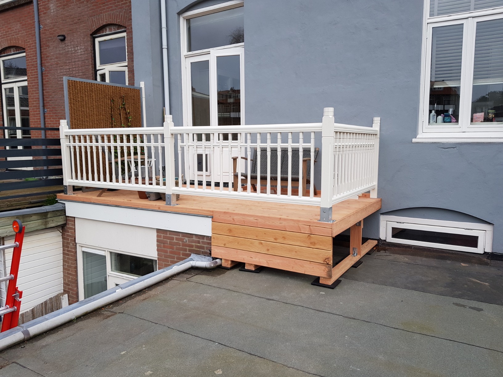 • Andere terrassen voorzien van nieuwe stabiele onderlaag en afgewerkt met vlonderplanken.