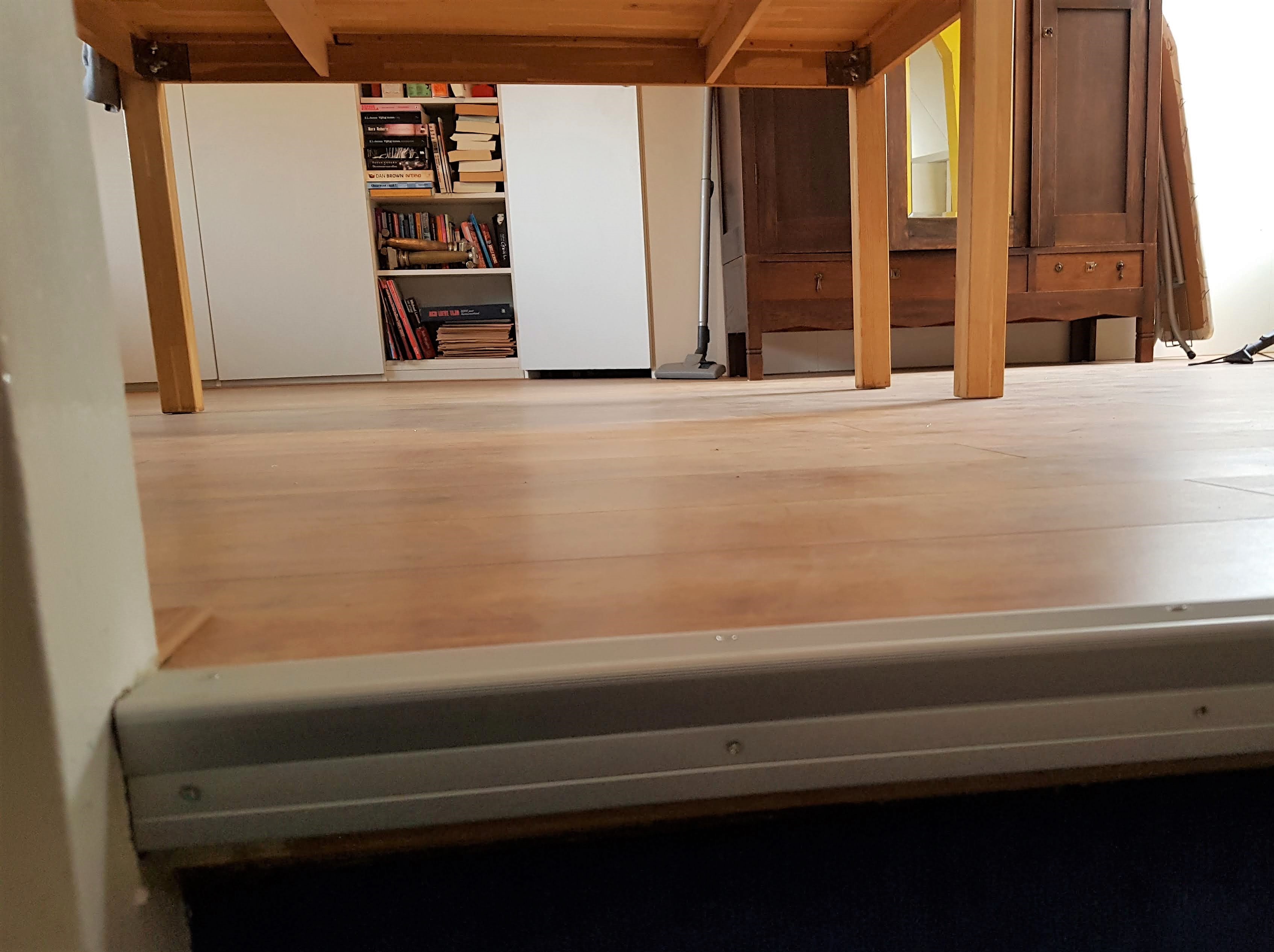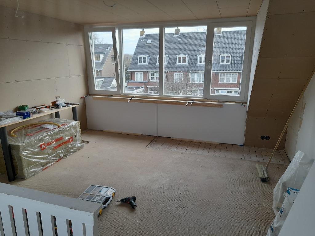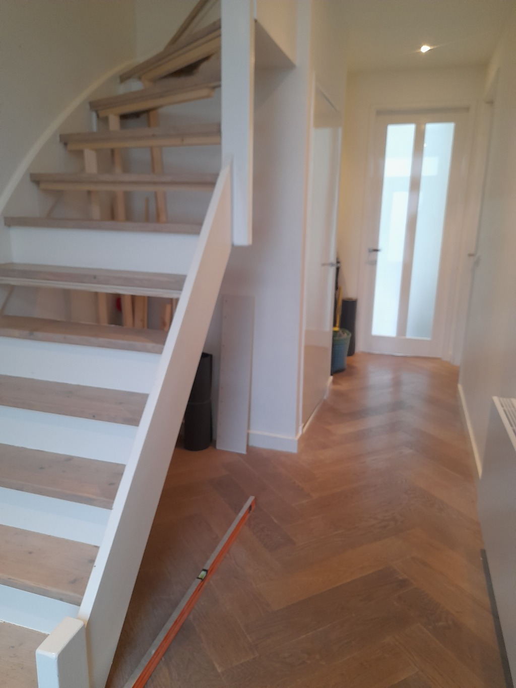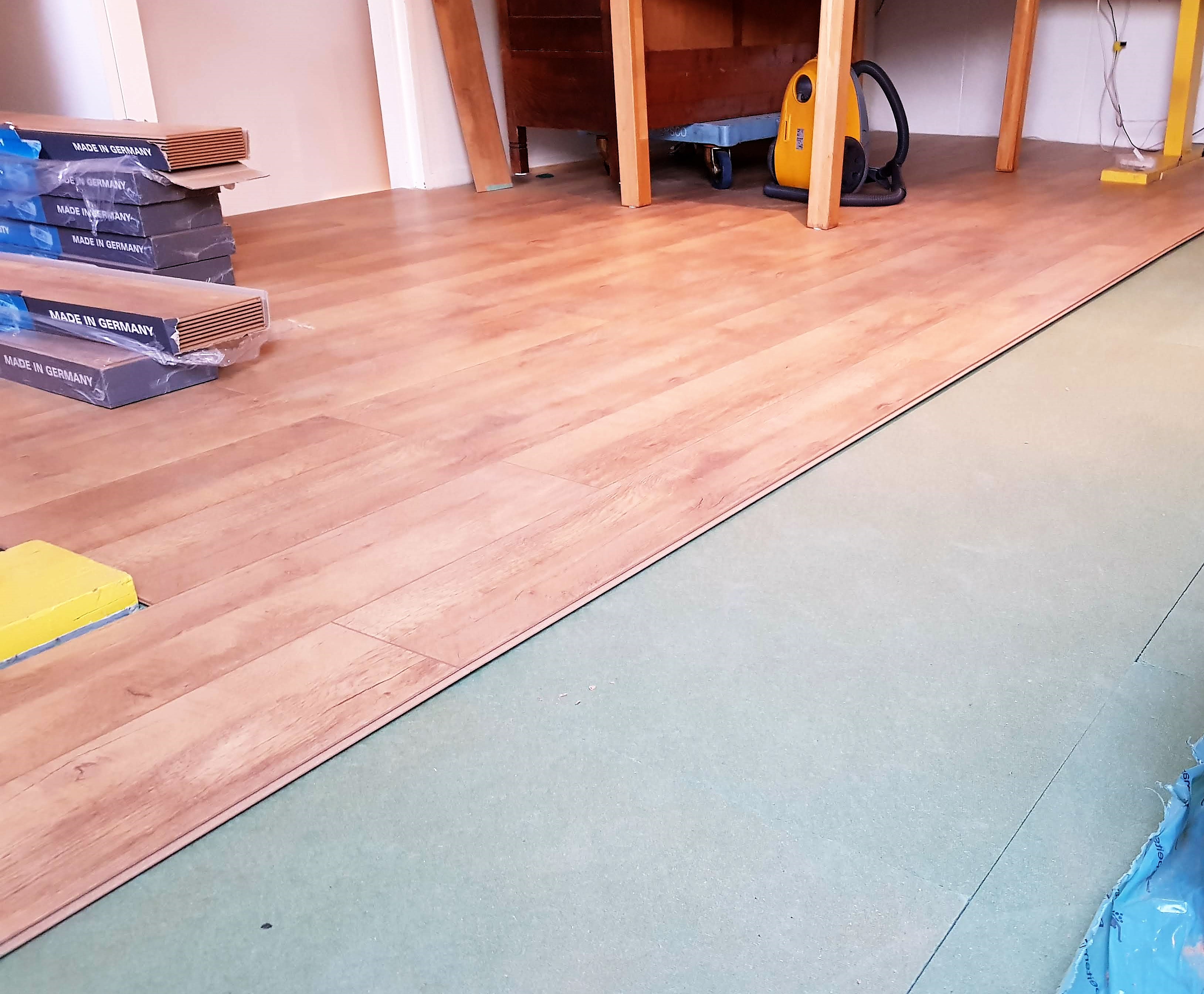 • Leggen van nieuwe ondervloer, kliklaminaat & afwerking met plakplinten.