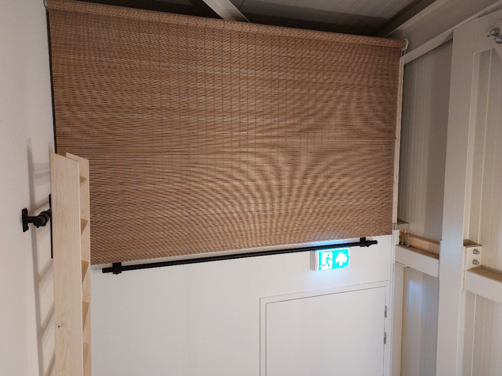 • De kastjes zijn afgewerkt van kraal schrootjes en bamboe bladen. De wanden zijn van dun bamboestroken en op de vloer een vinyl.
