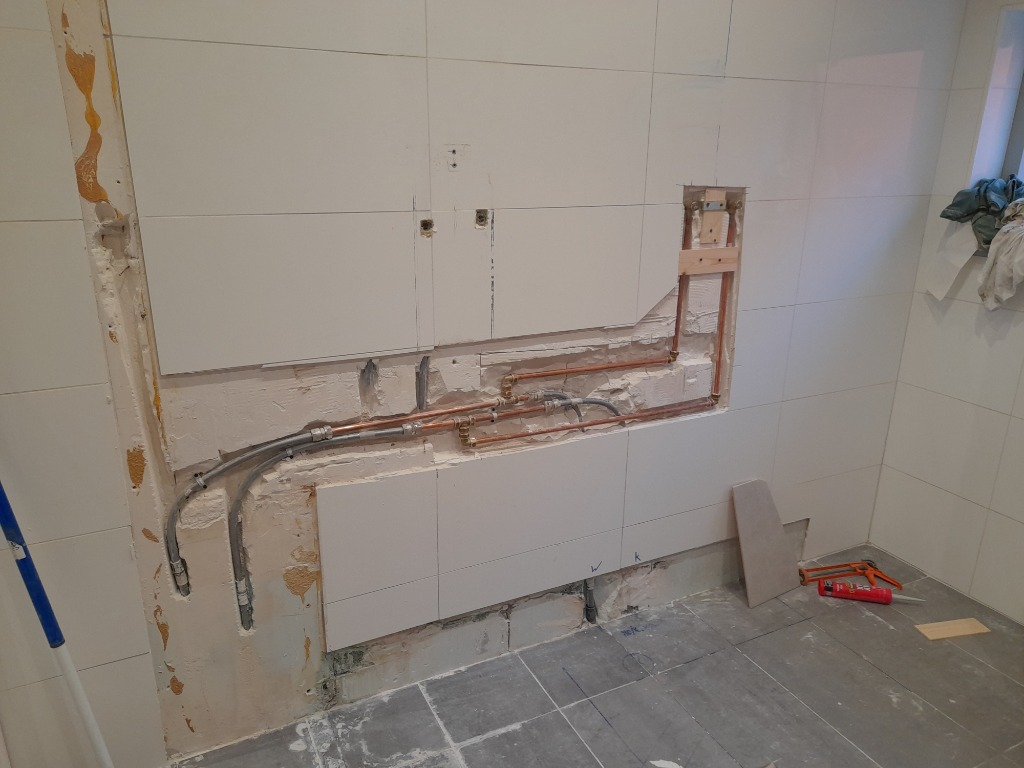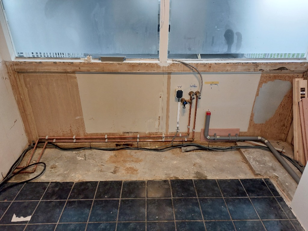 • Divers aanpassingen & vernieuwing van water- en afvoerleidingen werk voor o.a. nieuwe keuken, douche, boiler (met ombouwkast).