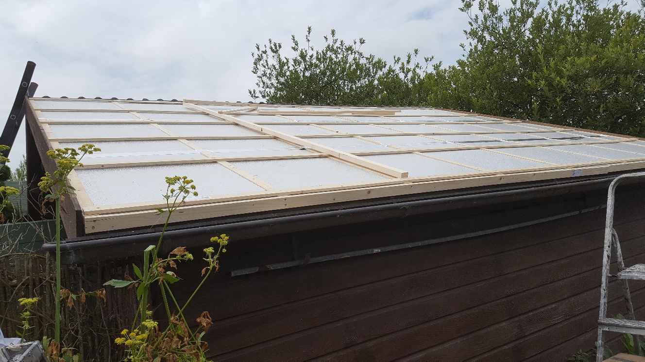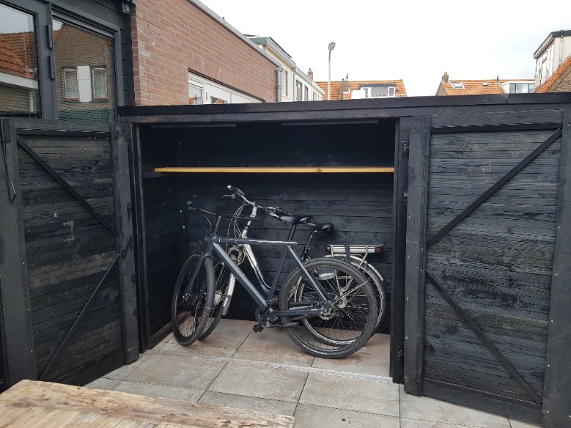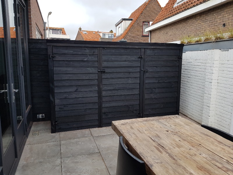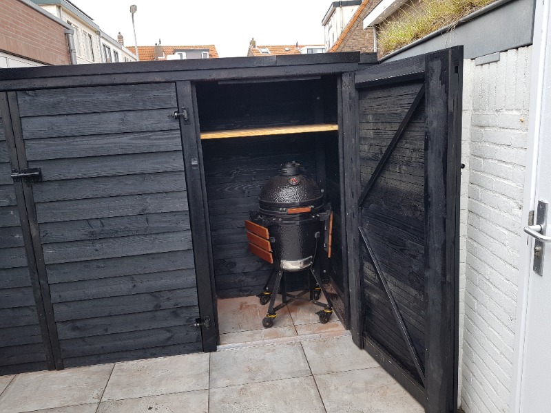 • Tuinkast gemaakt van zwarte Douglas potdeksel delen en PDEM dakzeil.